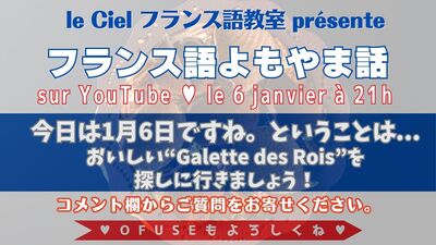 フランス語よもやま話 2026年1月6日(火)21時〜 「今日は1月6日ですね。ということは... おいしい“Galette des Rois”を 探しに行きましょう!」