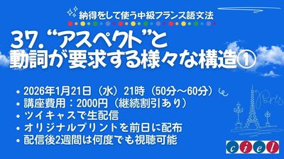 納得をして使う中級フランス語文法「37. “アスペクト”と動詞が要求する様々な構造1」