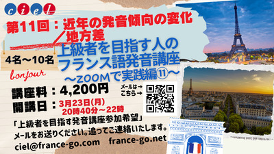 上級者を目指す人のフランス語発音講座 〜ZOOMで実践編⑪〜 第11回:近年の発音傾向の変化/地方差