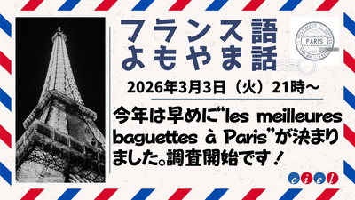 フランス語よもやま話 2026年3月3日(火)21時〜 「今年は早めに“les meilleures baguettes à Paris”が決まりました。調査開始です!」