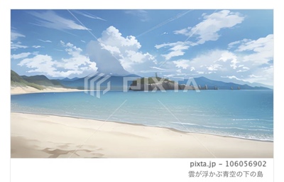 雲が浮かぶ青空の下の島