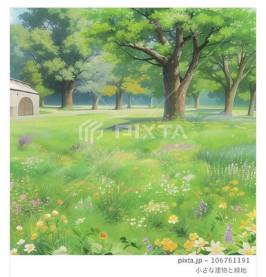 小さな建物と緑地