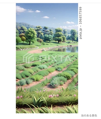 池のある景色
