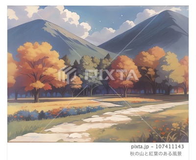秋の山と紅葉のある風景