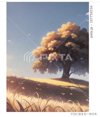 夕日に染まる一本の木