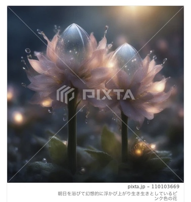 朝日を浴びて幻想的に浮かび上がり生き生きとしているピンク色の花