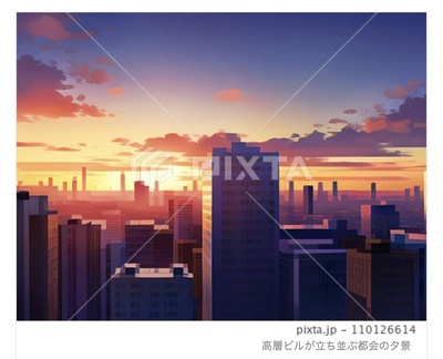高層ビルが立ち並ぶ都会の夕景