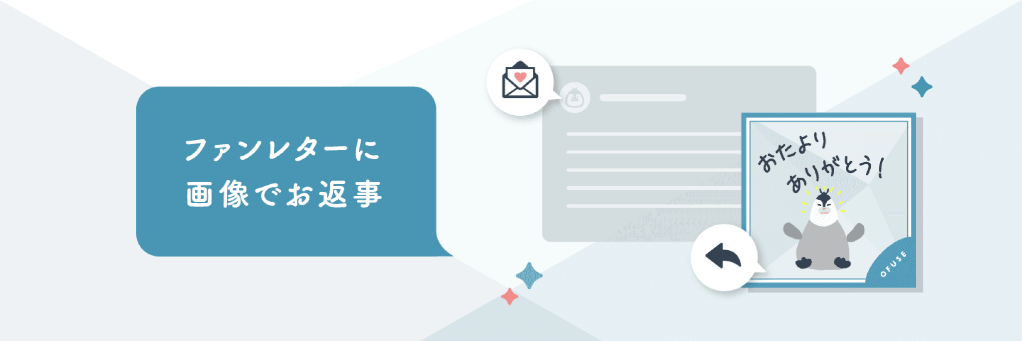 OFUSEのサービスおよび機能についての紹介画像をダウンロードいただけます。OFUSEの紹介や、ファンレター・メンバーシップなどの説明をする際にご利用ください。