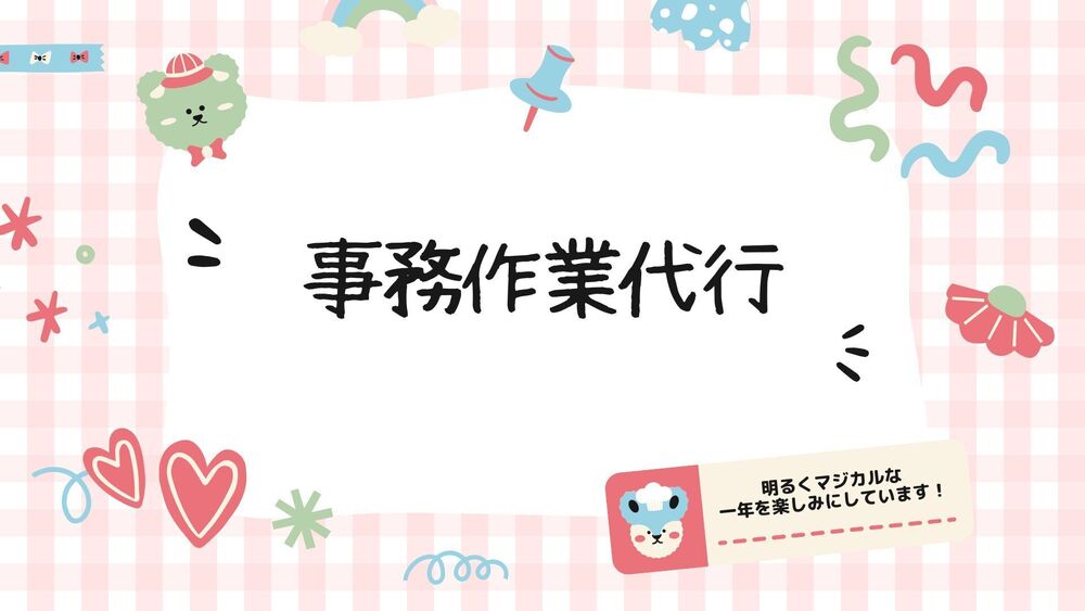 事務作業(データ入力ほか)を代行致します。 できること 文章作成 メール作成 校正・編集 リサーチ まとめ作成 記事作成 電話応対 その他在宅でできること チャットワークにてヒアリング致します。